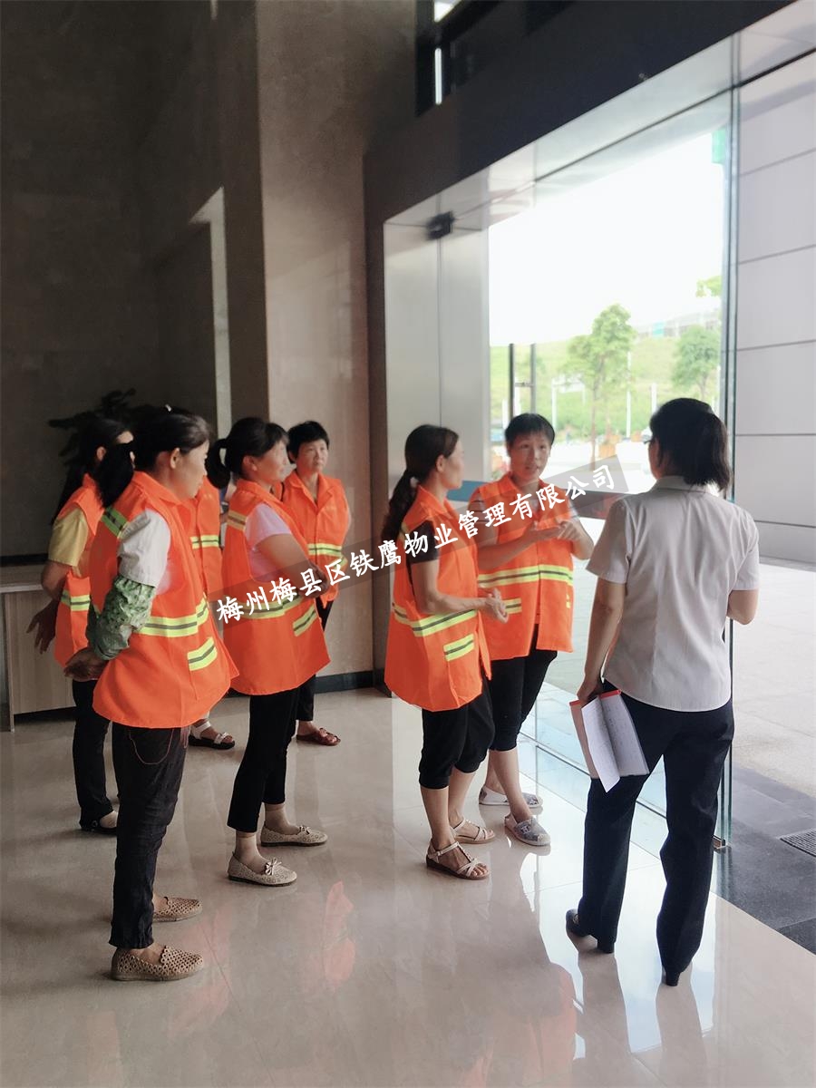 公司为了增强保洁人员的清洁服务意识,特聘请了保洁专家给员工进行日常的清洁培训工作,让员工进一步加深并按规范操作落实到实际工作里。